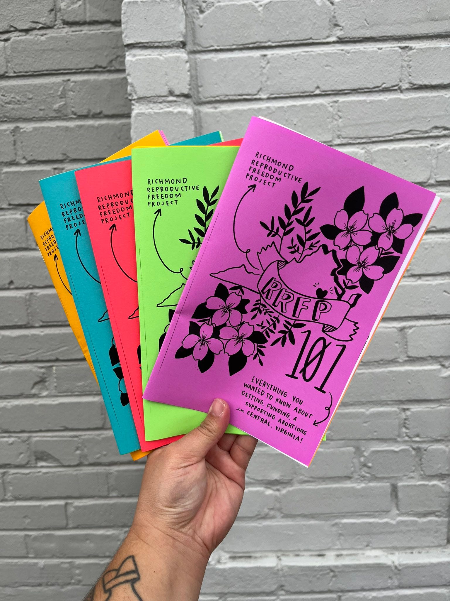 I’ve been collaborating with staff and volunteers at the Richmond Reproductive Freedom Project on creating zines to share information on abortion access and reproductive justice across Virginia. Our first zine was an “RRFP 101,” and we have some big/fun ideas for future “101” zines.