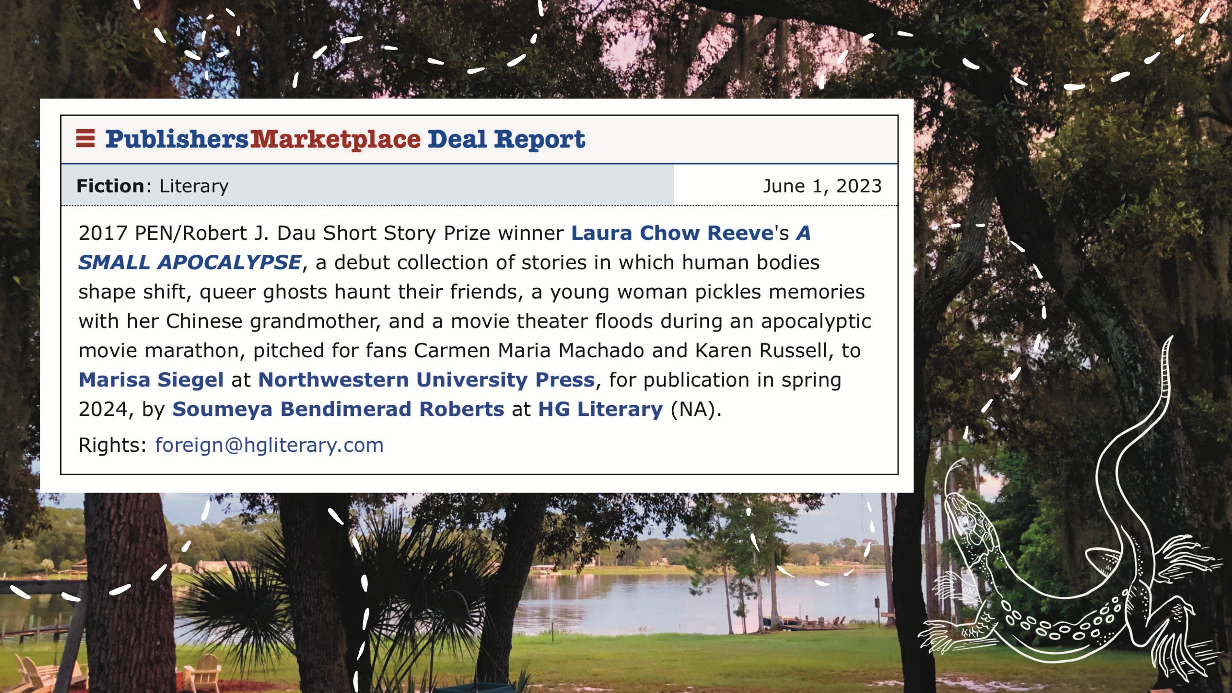 I have some really exciting news that I can finally share! My debut short story collection, A SMALL APOCALYPSE, is coming your way in 2024 with TriQuarterly Books/ Northwestern University Press. It's full of queer ghosts, shape shifting, the end of the world, & messy/beloved chosen families. Nearly 8 years in the making, I can’t believe this book will be out in the world in less than a year.